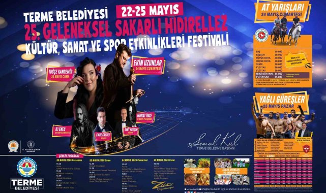 Terme Belediye Başkanı Şenol Kul, festival öncesinde yaptığı açıklamada, "Baharın müjdecisi Hıdırellez'i, 25 yıldır olduğu gibi bu yıl da Sakarlı'da büyük bir coşkuyla kutlayacağız. Bu özel yılımızda festivalimizi dört güne yayarak, kültürden sanata, spordan eğlenceye kadar her yaş grubuna hitap eden zengin bir içerik hazırladık" dedi. Başkan Kul, tüm Terme halkını, çevre il ve ilçelerden gelecek misafirleri bu büyük şenliğe davet etti.