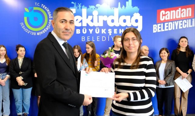 Büyükşehir Belediyesi Ana Hizmet Binası'nda düzenlenen sertifika törenine Tekirdağ Büyükşehir Belediye Başkanı Dr. Candan Yüceer, Tekirdağ İl Millî Eğitim Müdürlüğü Hayat Boyu Öğrenme Şube Müdürü Hasan Hüseyin Elverişli ve Süleymanpaşa Halk Eğitim Merkezi Müdürü Erdem Zeray katıldı. Eğitimlerini başarıyla tamamlayan 27 kursiyere sertifikaları Başkan Yüceer tarafından takdim edildi.
