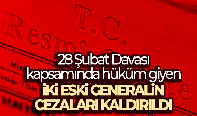 Cumhurbaşkanı Kararıyla, 28 Şubat Davası kapsamında müebbet hapis cezasına çarptırılan eski Orgeneral İlhan Kılıç ve eski Tümgeneral Kenan Deniz’in cezaları kaldırıldı.