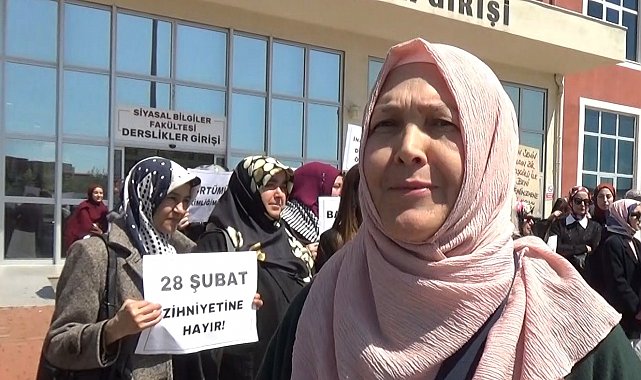Aydın Adnan Menderes Üniversitesi'nde (ADÜ) görev yapan Doç. Dr. Mehmet Aydıner'in başörtüsüne yönelik söylemlerde bulunduğu iddiası üzerine basın açıklaması yapan üniversite öğrencilerine destek veren 28 Şubat mağduru emekli öğretmen Mefaret Kılınç, "28 Şubat dönemini tekrar çocuklarımızın, genç kızlarımızın yaşamaması için bugün buradayım" dedi.