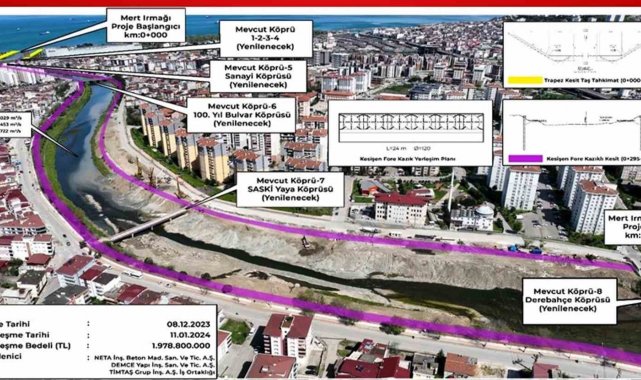 Projenin fiziksel tamamlanma oranı yüzde 40'a yaklaştı. İş kapsamında, sol sahilde 855 metre, sağ sahilde bin 404 metre kesişen fore kazıklarla sızdırmazlık perdesi, sol sahilde bin 84 metre, sağ sahilde ise 536 metre betonarme konsol duvar, denize çıkış kısmında çift taraflı 295 metre taş tahkimat trapez kanal, yukarı havzada 2 adet betonarme tersip bendi, 7 adet araç, 1 adet yaya ve 1 adet servis köprüsü yapılacak. Öte yandan sağ sahilde bin 176 metre, sol sahilde bin 199 metre fore kazık duvar imalatı, sağ sahilde 6 metrelik kaplama taban kazık, 35 adet ana kaplama duvar imalatı ise bitti. Sonuç olarak proje kapsamında Mert Irmağı üzerinde bulunan toplam 8 köprü yenilenecek.
