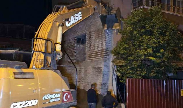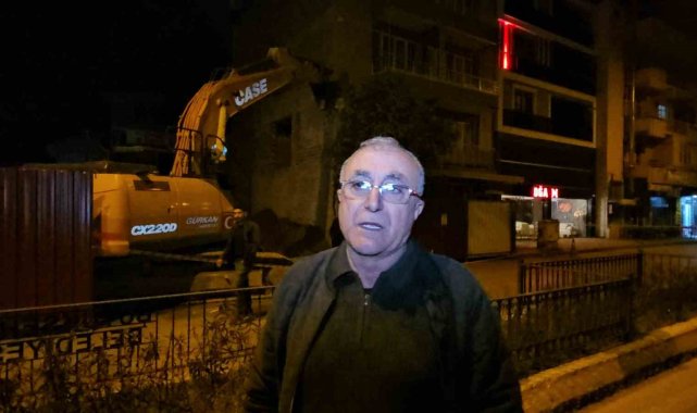3 katlı bina yıkılmasın diye kepçeyle desteklendi