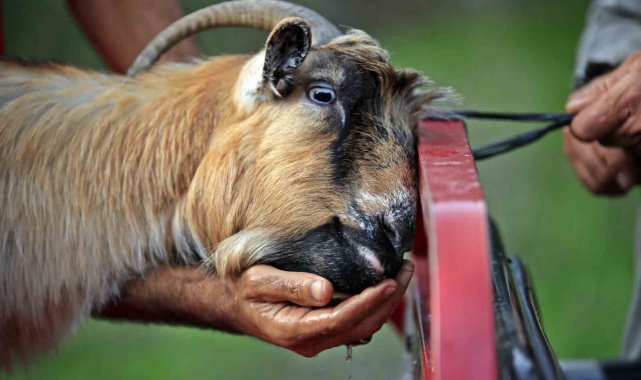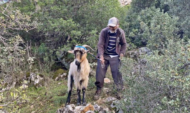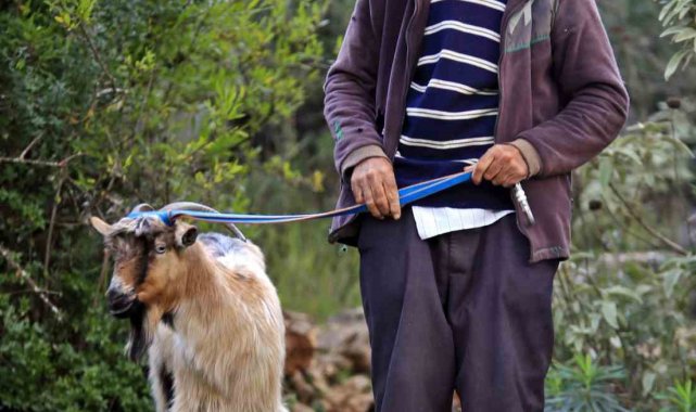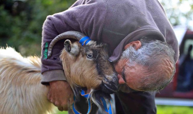 3 keçisini kurtlar yiyen yaşlı adam, mahsur kaldığı uçurumdan kurtarılan son keçisine sarılıp doyasıya öptü