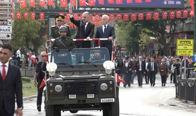 Ardından üstü açık araçla vatandaşların bayramını kutladı. Selamlama sonrası Osmangazi, Yıldırım, Nilüfer belediyeleri folklor ekipleri gösterilerini sundu. Program, günün anlam ve önemini anlatan konuşma ve şiirin ardından resmi geçitle devam etti.