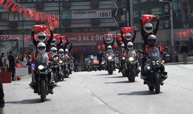 TOMA'dan atlı birliklere, köpekli ekiplerden jandarma helikopterine kadar resmi geçit herkesin göğsünü kabarttı. Törene damgasını vuran ise, akülü motoruyla askerlerin arasında geçide dahil olan çocuk oldu. Ayağa kalkarak protokolü selamlayan çocuk, vatandaşların büyük beğenisini kazandı.