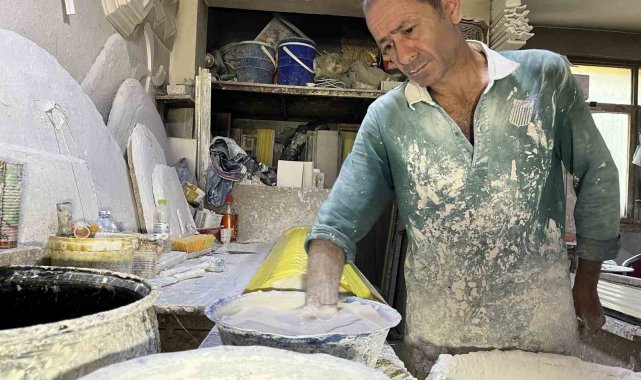 Çocukluk hevesiyle 12 yaşında babasının yanında bu işe başlayan İbrahim Yavuz (49), işini büyük bir aşkla sürdürüyor. Yavuz, çalışmaktan keyif aldığını ifade ederek, bu mesleğin severek yapılması gerektiğini söyledi. Çocukluktan beri babasının yanında olduğunu belirten alçı ustası İbrahim Yavuz, "Bir gün buraya geldim. Baba bir kalıp dökebilir miyim dedim. Çocukluk hevesiyle dökmeye başladım. O gün bugündür döküyorum, bırakamadık. Keyifli ve zevkli bir meslek, işimi severek yapıyorum, keyif alıyorum. Zaten bu işi sevmezsen, yapamazsın. Sabır işidir, ince iştir" dedi.
