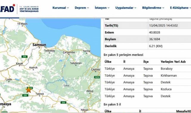 Amasya'nın Taşova ilçesinde saat 17.43'te meydana gelen 4,6 büyüklüğündeki deprem, Amasya'nın yanı sıra Samsun, Tokat ve Sivas'ta da şiddetli şekilde hissedildi. Samsun'da güvenlik kameralarına da yansıyan depremde panik olan vatandaşlardan bazıları, yağmurlu havaya rağmen evlerinden ve iş yerlerinden çıkarak bir süre sokakta beklediler.