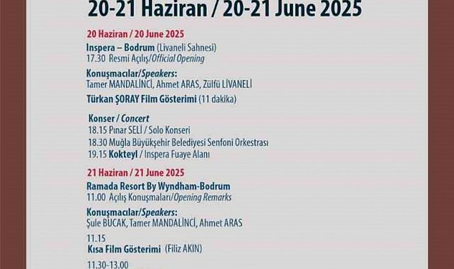 Program, 18.15'te Pınar Seli'nin solo konseri ve 18.30'da Muğla Büyükşehir Belediyesi Senfoni Orkestrası'nın konseriyle devam edecek. Etkinlik 19.15'te Inspera Fuaye Alanı'nda gerçekleştirilecek kokteyl ile sona erecek.