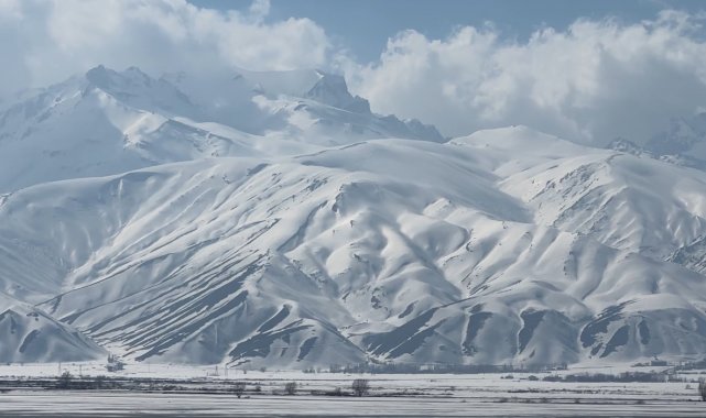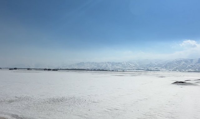 Yüksek kesimlerde kar kalınlığının yer yer 3 metreyi bulduğu bölgede, iki yerleşim yeri arasındaki iklim farkı havadan görüntülendi.