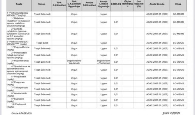 Üründü çifti, bağlarından elde ettikleri üzümlerin laboratuvar analizlerini yaptırarak, ürünlerinde aktif madde bulunmadığını raporla belgeledi.
