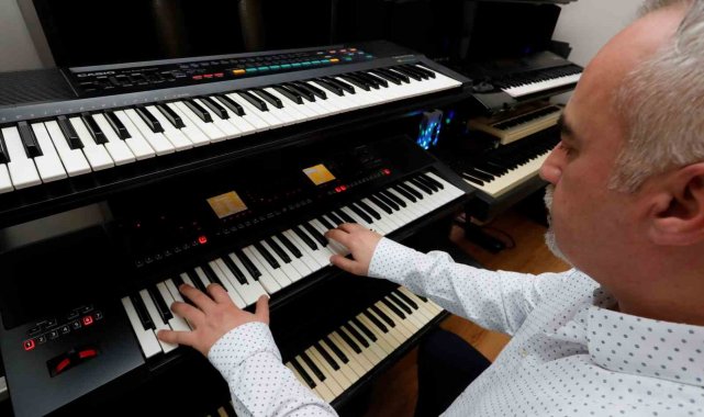 Antalya'da müzik öğretmeni Gökhan Heparslan, çocukluğundan bu yana kullandığı ve koleksiyon haline getirdiği nostaljik müzik klavyelerle geçmişe yolculuk yaptığını söyledi.