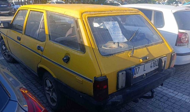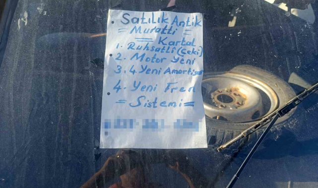 Antalya'nın Manavgat ilçesinde hastane bahçesinde park halindeki 1984 model Tofaş Kartal marka otomobilin arkasındaki satılık ilanı görenlerin ilgisini çekti.