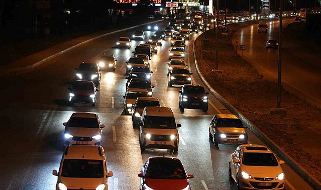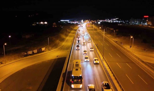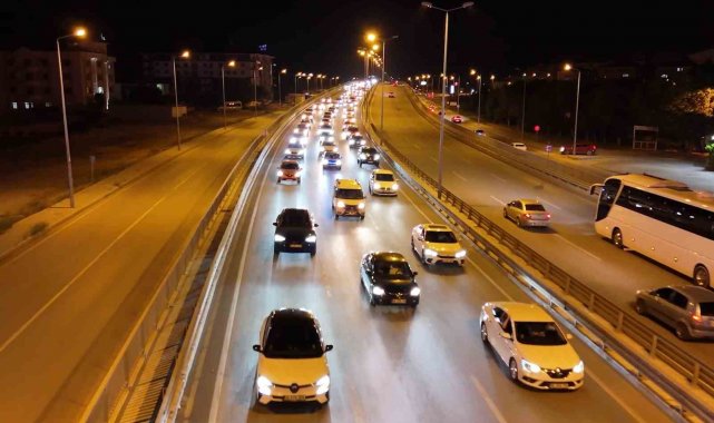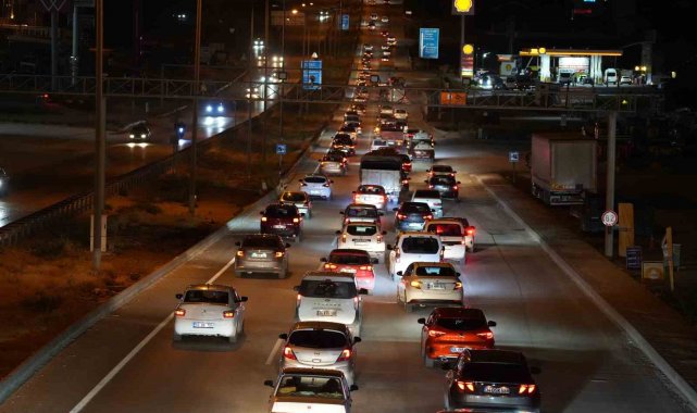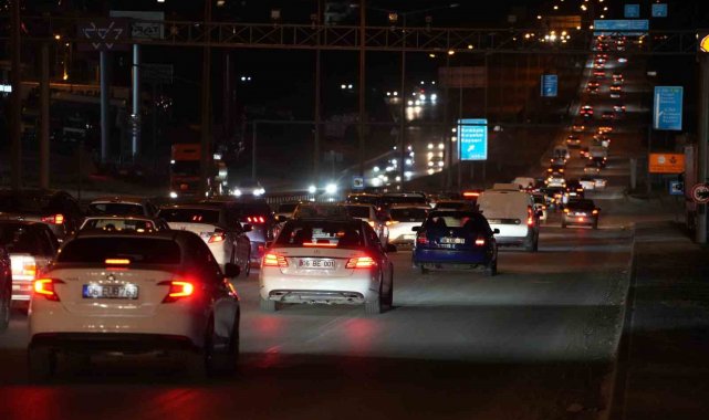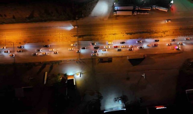 43 ilin geçiş güzergahında gece yarısı trafik yoğunluğu böyle görüntülendi