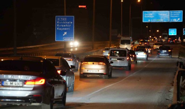Türkiye'nin önemli geçiş güzergahlarından biri olan Kırıkkale'de, Kurban Bayramı tatili nedeniyle trafik yoğunluğu oluştu. Gece yarısı da yaşanan trafik yoğunluğu, havadan görüntülendi.