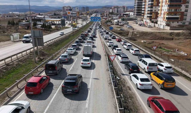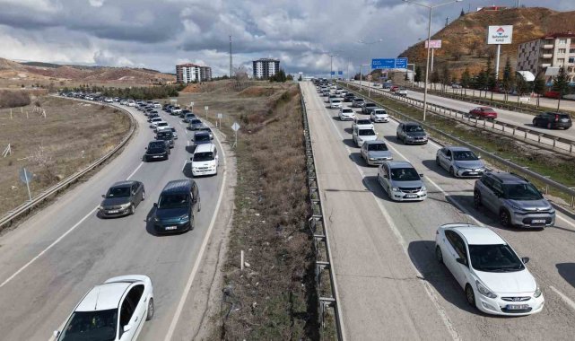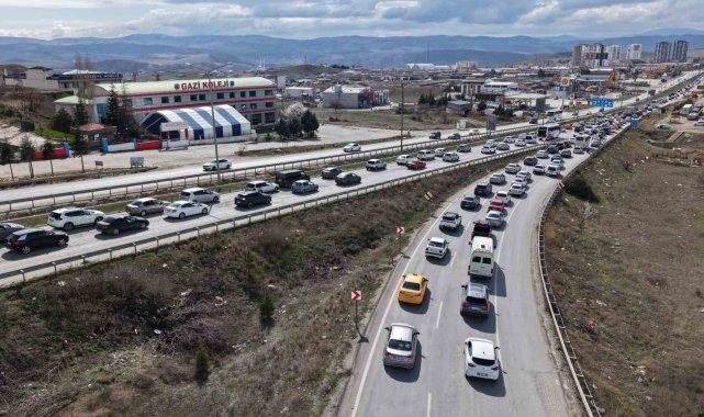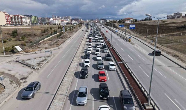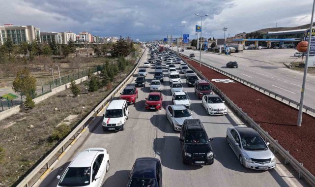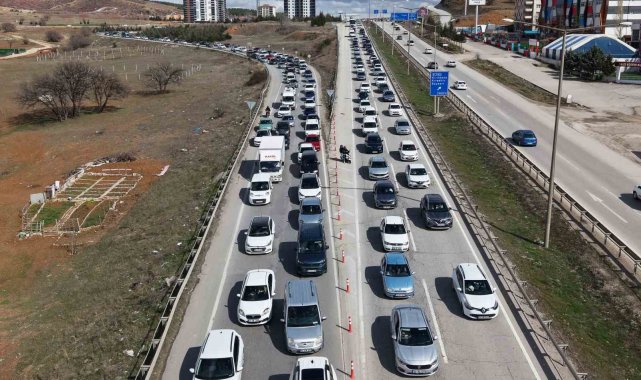 Ulaşımda 43 ilin geçiş noktasında bulunan "kilit kavşak" Kırıkkale'de, Ramazan Bayramı'nın son gününde trafik yoğunluğu yaşanıyor. Tatilcilerin dönüş yolculuğuna geçmesiyle oluşan kilometrelerce araç trafiği havadan görüntülendi.