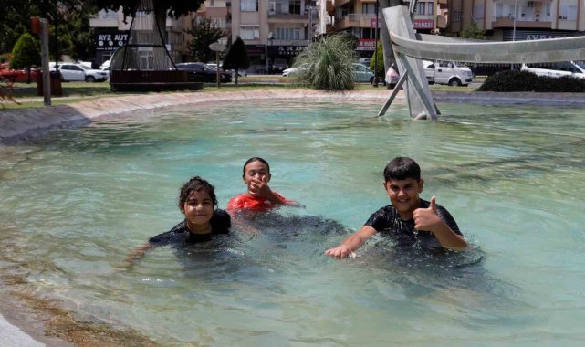 44 derecelik sıcaktan bunalan çocuklar süs havuzunda serinledi