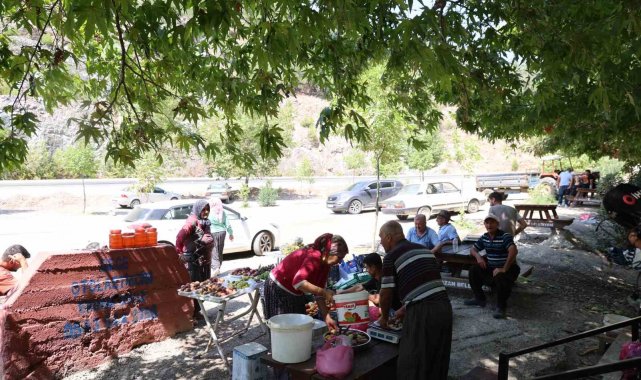 Çınarın gölgesinde ürün satan Hanife Şahin, "Domates, incir gibi köy ürünlerini burada satıyorum. Ağaca zarar vermesinler diye etrafını sardık" dedi.