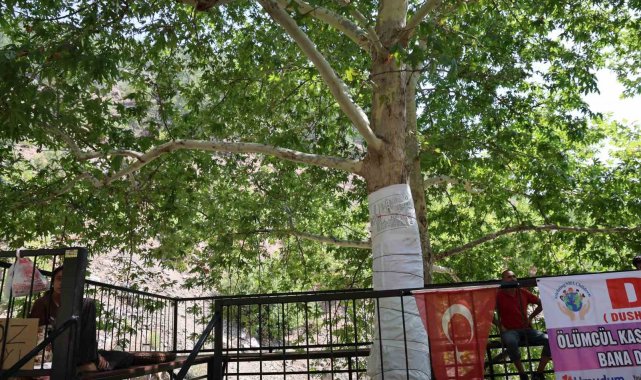 Tatlı satışı yapan Orhan Özdemir ise "Gölgesinde oturup serinliyorlar, sonra bıçakla isim kazıyorlar. Yaklaşık 45 yıllık bu ağacı korumak zorundayız. Korunmazsa gölgesinde oturamayız" diye konuştu.