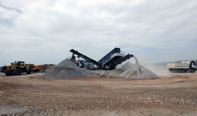 İl genelinde yapılan inşaat çalışmaları sonucu ortaya çıkan hafriyat malzemeleri, Büyükşehir Belediyesi'nin kurduğu 3 mobil konkasör tesislerinde işlenerek dolgu ve asfalt malzemesine dönüştürülüyor. Geri dönüşümle elde edilen malzemeleri çeşitli alanlarda kullanan Büyükşehir Belediyesi hem çevreyi hem de bütçesini korudu.