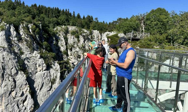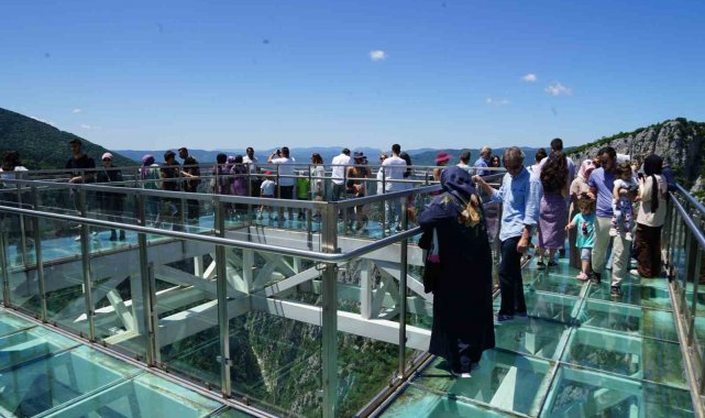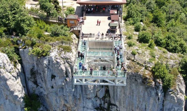 "Şehitler diyarı" ve "evliyalar şehri" olarak bilinen Kastamonu, son yıllarda yapılan yatırımlarla kültür turizminin yanı sıra doğa turizminde de öne çıkıyor. Tarım ve Orman Bakanlığı ile Azdavay Belediyesinin hazırladığı, Kuzey Anadolu Kalkınma Ajansı (KUZKA) desteğiyle hayata geçirilen cam teras projesi, 2025 yılının ilk 8 ayında 80 binden fazla turisti ağırladı. Küre Dağları Milli Parkı'nın kalbinde yer alan, Çatak Kanyonu'nda 450 metre yükseklikte bulunan cam teras, ziyaretçilere hem adrenalin dolu anlar yaşatıyor hem de doğal güzelliklerin eşsiz manzarasını sunuyor.