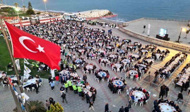 Mersin'in Erdemli ilçesinde binlerce vatandaş deniz kenarında geleneksel hale gelen iftar sofrasında bir araya geldi.