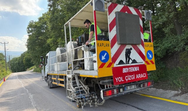 Kocaeli'de sürücülerin güvenli ulaşımı için kırsal bölgelerde 50 bin metrekare yol çizgi çalışması gerçekleştirildi.