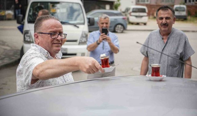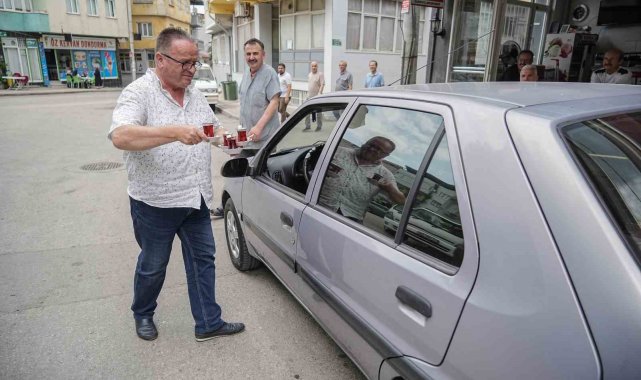 Bursa'da Osmangazi ilçesinde esnaf Ali İhsan Olcay, dükkanına 50 metre yakınındaki çay ocağından aldığı çayları, dükkanına kadar kendi otomobiliyle taşıyor. Kimi zaman komşularına da otomobiliyle çay servis eden Olcay, hem espri olsun diye hem de pratik olmasından dolayı bu şekilde taşıdığını söylüyor. Bu güne kadar ne bardak kırdığını ne de çayı dökmediğini belirten Olcay, aracıyla çay taşıdığı görüntülerin sosyal medyaya düşmesinden sonra nazar gelmesinden endişe ediyor.