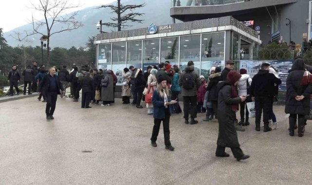 Kış turizminin önemli merkezlerinden Uludağ'da adım atacak yer kalmadı. Kar kalınlığının 85 santimetreyi bulduğu Uludağ'a çıkmak isteyenler, trafiğe takılmamak için teleferiğe yöneldi. Ancak herkes aynı düşünce içerisinde olunca, teleferikte de uzun kuyruklar oluştu. 500 metreyi aşan insan kuyruğu, ara sokaklara kadar uzandı.
