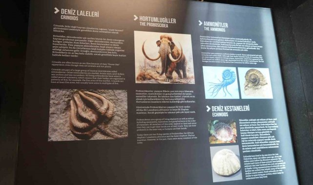 Müzede ayrıca, dinozorların ortaya çıkmasından 220 milyon yıl önce denizlerde yaşayan deniz kestaneleri, 65 milyon yıl önce yok olan ammonitler ve çiçeğe benzeyen deniz laleleri hakkında da bilgilendirmeler yer alıyor.
