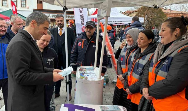 Anma programı çerçevesinde Uşak Belediyesi Yöresel Ürünler Çarşısı önünde kurulan kamu kurumları ve sivil toplum kuruluşlarının stantlarını gezen Uşak Valisi Naci Aktaş, yürütülen çalışmalar hakkında yetkililerden bilgi aldı.