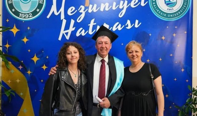 Balıkesir Üniversitesi Havran Meslek Yüksekokulu, 2025 yılı mezunlarını verirken, Burhaniye Belediye Meclis Başkan Vekili Tarık Erdil de diploma almaya pak kazanan 70 öğrencinin arasında yer aldı. Genç sınıf arkadaşları ile birlikte kep atan 2 çocuk babası 60 yaşındaki Erdil, büyük mutluluk yaşarken, Erdil'i ilk kutlayan da eşi Ayla Erdil ile kızı Bilge Erdil oldu.
