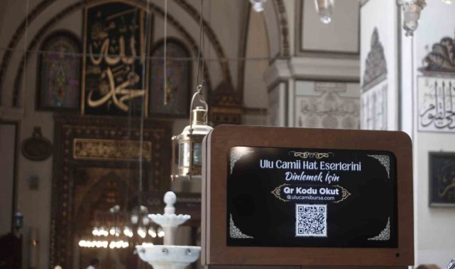 Bursa'nın simgelerinden Ulu Cami'de yer alan hat eserleri dijital ortama aktarıldı. Tarihi camiyi ziyaret eden turistler kare kodları tarayarak hatların yazarlarını, Arapça okunuşu ve Türkçe mealini dinleyebiliyor.