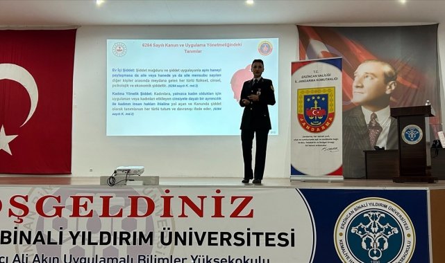 Erzincan İl Jandarma Komutanlığı Aile İçi Şiddetle Mücadele ve Çocuk Kısım Amirliği ekipleri, Kemaliye'de Hacı Ali Akın Meslek Yüksekokulu öğrencilerine 6284 sayılı kanun kapsamındaki haklar ile KADES uygulamasını tanıttı.