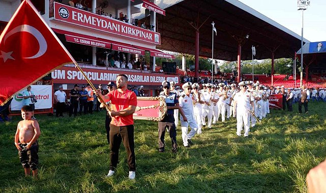 664. Tarihi Kırkpınar Yağlı Güreşleri'nin ilk gün müsabakaları tüm heyecanıyla devam ediyor. Müsabakalar devam ederken geleneksel resmi açılış töreni yapıldı. Saygı duruşunda bulunulup, İstiklal Marşı'nın okunmasının ardından söz ve bestesi merhum Beyazıt Sansı'ya ait Kırkpınar Marşı söylendi. 2024 yılının başpehlivanı Yusuf Can Zeybek, Türk bayrağını göndere çekti.
