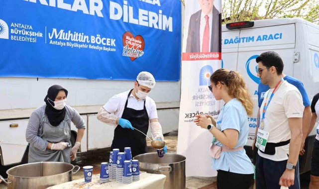 Öte yandan Antalya Büyükşehir Belediyesi Mobil Aşevi tırı, bitiş çizgisine yaklaşan sporculara sıcak çorba ikramında bulundu.