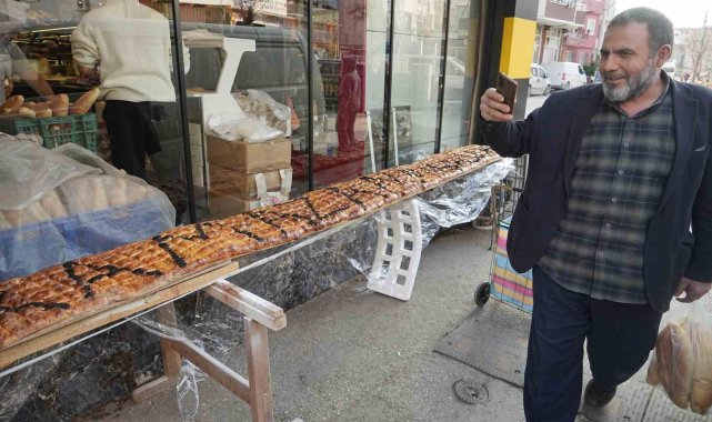 7 metrelik pideyi görünce şaşırdığını belirten Şakir Kılıç ise "80 yaşındayım ilk defa bu kadar uzun pide gördüm" dedi.