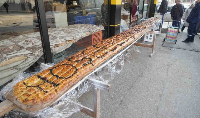 Bursa'nın Osmangazi ilçesinde 20 yıldır fırıncılık yapan Subay Özçelik, Ramazan ayının gelmesiyle en uzun pideyi hazırlamaya karar verdi. Pide için kolları sıvayan 8 kişi, 7 metre uzunluğundaki hamura çörek otu ile 'Hoşgeldin Ramazan maşallah' yazıp fırına verdi. Yapımı yaklaşık 2 saat süren pide uzun uğraşlar sonucu streçlenerek fırın önünde sergilendi. 7 metrelik pideyi gören vatandaşlar cep telefonu ile fotoğrafını çekti.