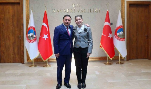 Kayseri Valisi Gökmen Çiçek, 23 Nisan Ulusal Egemenlik ve Çocuk Bayramı dolayısıyla temsili olarak koltuğunu Kocasinan İlçesi Osman Ulubaş Sümer Ortaokulu 7. sınıf öğrencisi Zeynep Erdoğan'a devretti.