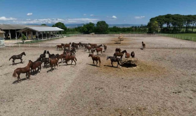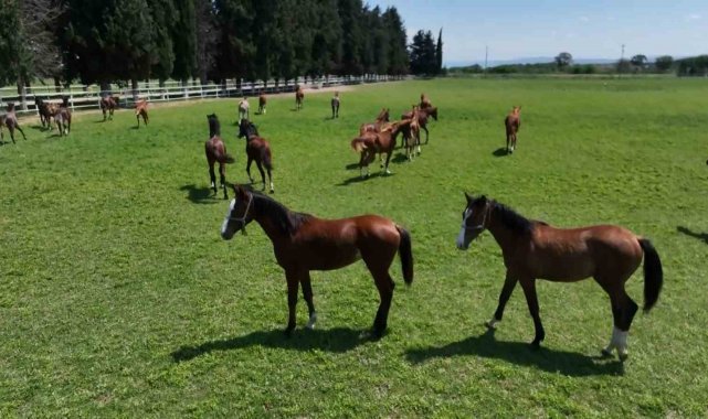 Bugün pistlerde koşan Arap atlarının yarısından fazlasını yetiştiren işletmede büyük bir titizlikle yetiştirilen Türk Arap atları drone ile görüntülendi. Her gün belli saatlerde açık alana salınan atların enerjilerini atmaları, koşuşturmaları ve birbirleriyle oynaşmaları görüntülere yansıdı.