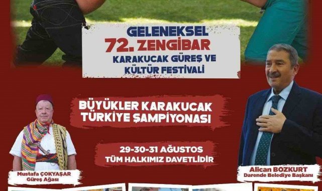 Malatya'nın Darende ilçesinde geleneksel hale gelen ve bu yıl 72'ncisi düzenlenecek olan Zengibar Karakucak Güreş ve Kültür Festivali, 29-30-31 Ağustos 2025 tarihlerinde gerçekleştirilecek. Üç gün sürecek festival, birbirinden renkli etkinliklerle vatandaşlara unutulmaz anlar yaşatacak.