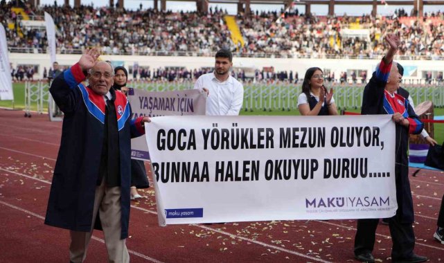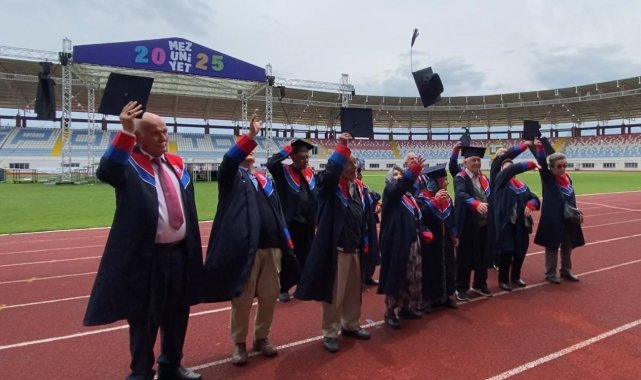 Dün düzenlenen mezuniyet töreninde, huzurevi sakinleri üniversite öğrencileriyle birlikte kortejin en önünde yürüyerek büyük alkış topladı. Ellerinde taşıdıkları pankartlarla gençlere örnek olan yaşlılar, okumanın yaşının olmadığını herkese gösterdi.