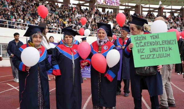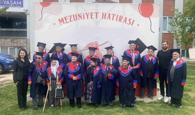 Mezuniyet töreninde çocuklarının mezuniyetini izlemeye gelen aileler de yaşlılara büyük destek verdi. Coşku içinde alkışlanan yaşlıların yüzündeki mutluluk, duygusal anların yaşanmasına neden oldu.