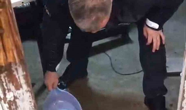 79 yaşındaki adamın evini su bastı, yardımına polis yetişti