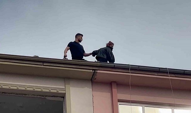 8 katlı binanın çatısına çıkan kadın ikna edilerek aşağı indirildi