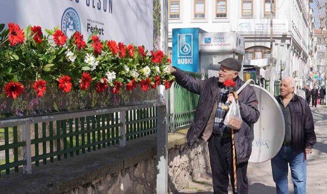 8 Mart'ta Kestel çiçek açtı...Kadınlar için bilboardların altına çiçek bırakıldı