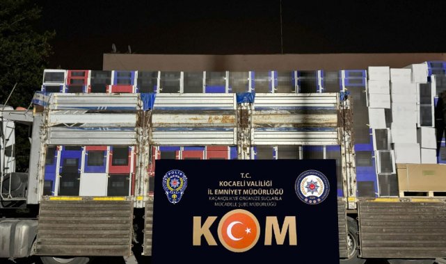 Kocaeli'de Kaçakçılık ve Organize Suçlarla Mücadele Şube Müdürlüğü ve İstihbarat Şube Müdürlüğünce kaçakçılığın men ve takibine yönelik ortak çalışma yapıldı. Yapılan çalışmalar neticesinde dün İzmit Tem Otoyolu İstanbul istikametinde durdurulan tırda, çekici ve dorsesinde köpekle yapılan arama 8 milyon dal bandrolsüz boş makaron ele geçirildi. Makaronlara el koyulurken 2 şüpheli hakkında 5607 S.K.M suçundan adli işlem yapıldı.