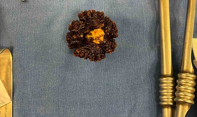 Afyonkarahisar'ın Sandıklı ilçesinde idrarını yaparken yanma ve kanama şikayetiyle hastaneye başvuran 80 yaşındaki hastanın mesanesinden 6.06 santimetre genişliğinde ve 7 santimetre uzunluğunda taş çıkarıldı.