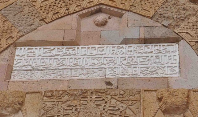 Cami kapısındaki taşa işlenmiş taçlı kadın başı silüeti ilgi görüyor