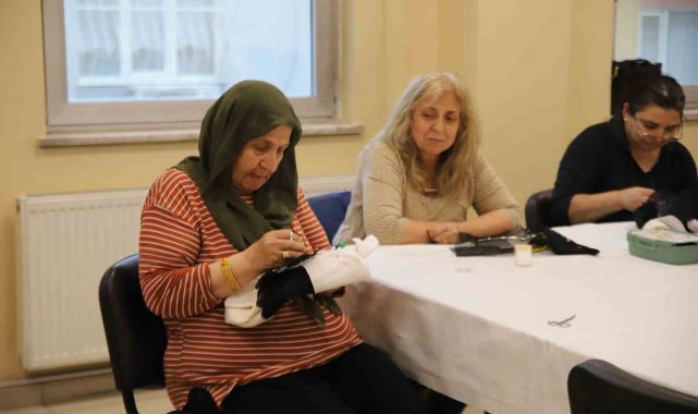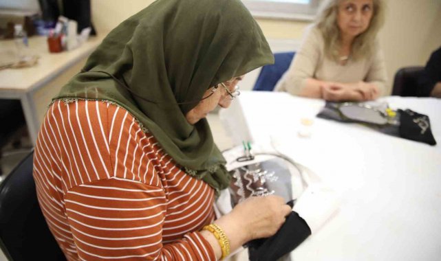 Gaziantep'te Şahinbey Belediyesi Yaşar Torun Gençlik Merkezinde gönüllü el işi yapan 83 yaşındaki Yüksel Tekeoğlu, enerjisiyle gençlere taş çıkartıyor.