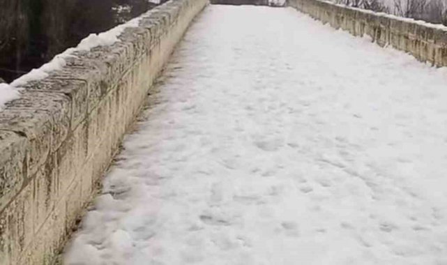 Diyarbakır'ın Çermik ilçesinde bulunan Artuklu eseri tarihi Haburman Köprüsü, ilk günkü ihtişamı ile ayakta durmaya devam ediyor. Yaklaşık 850 yıllık tarihi köprü, karla birlikte seyrine doyumsuz manzara oluşturdu.